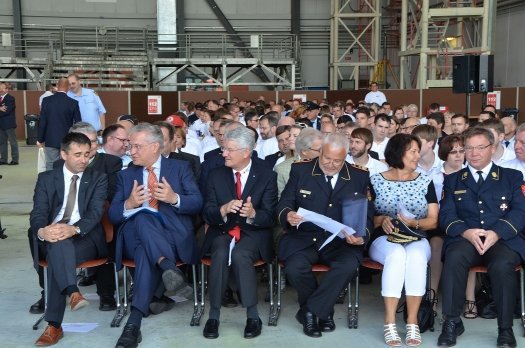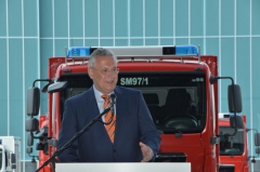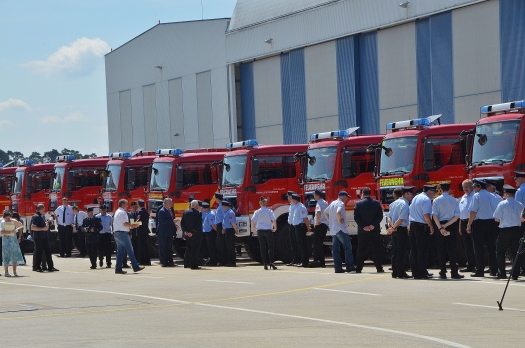Für den Katastrophenschutz in Bayern hat Innenminister Joachim Herrmann am Samstag auf dem Flughafen Ingolstadt-Manching 94 Fahrzeuge an die Feuerwehren und Hilfsorganisationen übergeben.